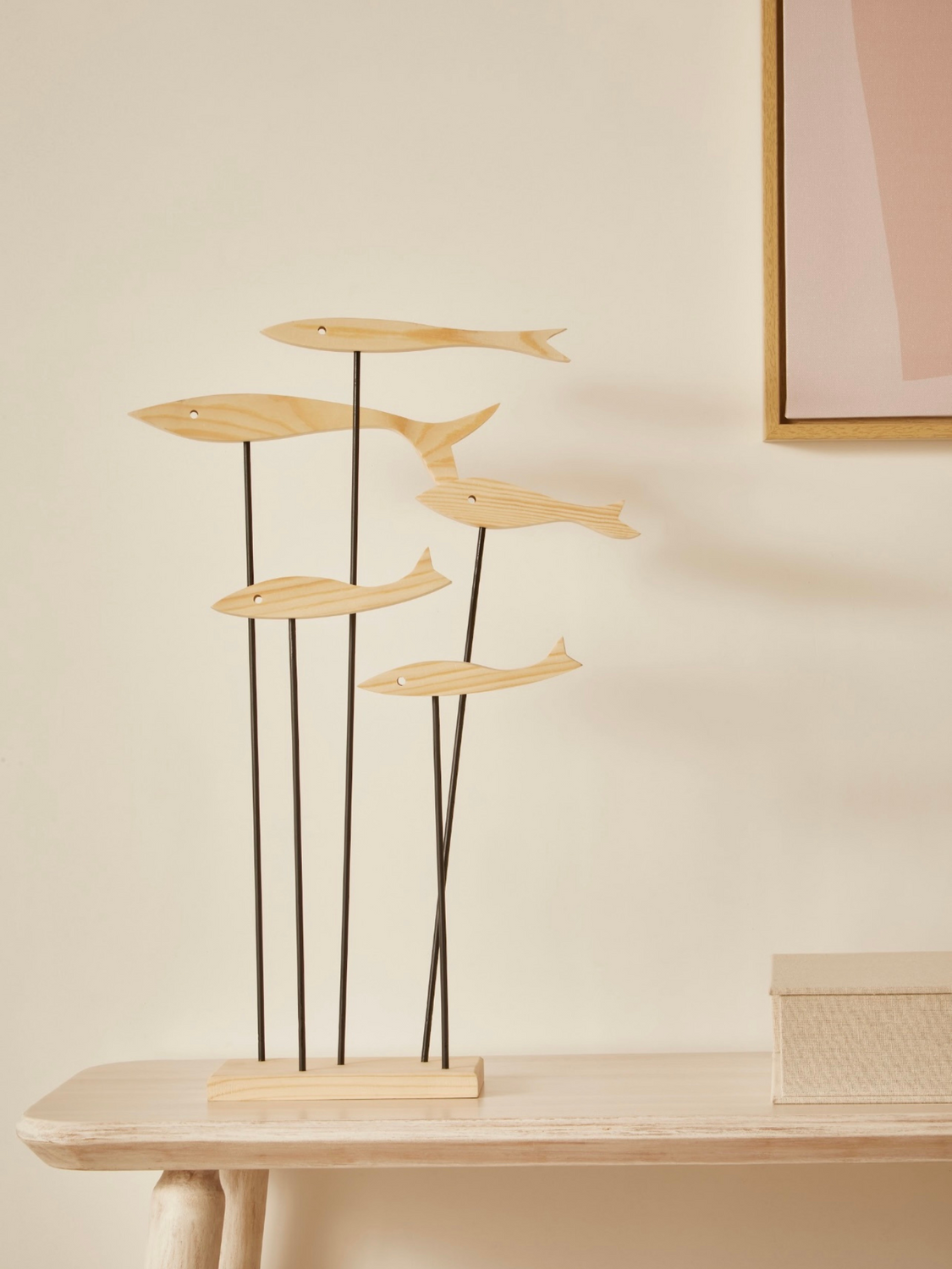 Inspirada na beleza dos oceanos, a escultura cardume em madeira representa união, fluidez e liberdade. Feita artesanalmente, cada peça captura o movimento natural dos peixes, criando um efeito dinâmico e elegante na decoração.